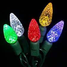 Slightly smaller than a night light, the C6 is sometimes referred to as a “strawberry” light because of it’s shape. These lights look best on large trees.