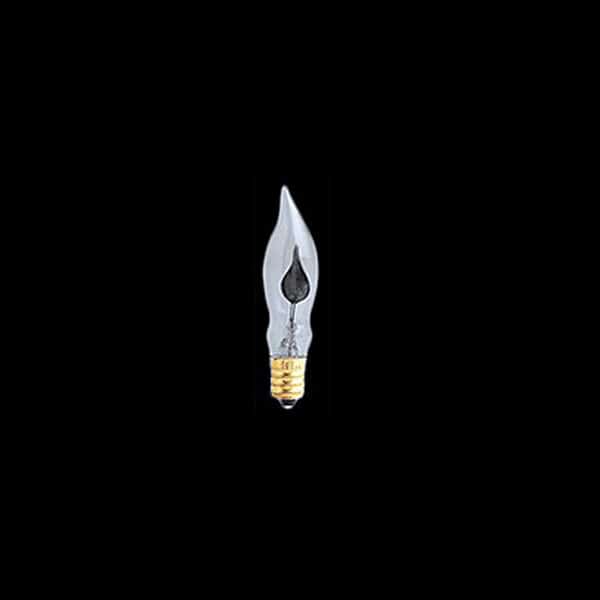 These flicker bulbs simulate candlelight, and come in a variety of sizes and bases to fit your needs Clear bulbs have a bent tip, use 3 watts of electricity, and have an average life of 2000 hours. The silicone-coated bulb also uses 3 watts of electricity, and has an average life of 3000 hours..