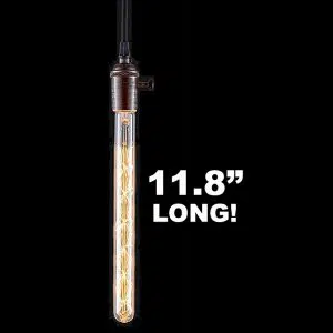 This is a huge vintage-looking incandescent bulb, 60W, 4.5 inch x 16.25 inch, with a medium base. This light bulb borrows from those used in Mid-Century factories and offices. These large and impressive antique style light bulbs are particularly useful in creating unique socket-cord pendant fixtures.