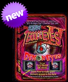 This new DVD includes three more types of eyes, which can be used either individually or in pairs. Using a TV and a piece of black cloth, you can make “ClownEye”, “DollEye” or “MumEye” peer through your window, from the bushes, a dog house, or even from under your car. Use multiple TVs and you can create the illusion of a huge creature or have eyes staring at you from many directions. This is a must-have!